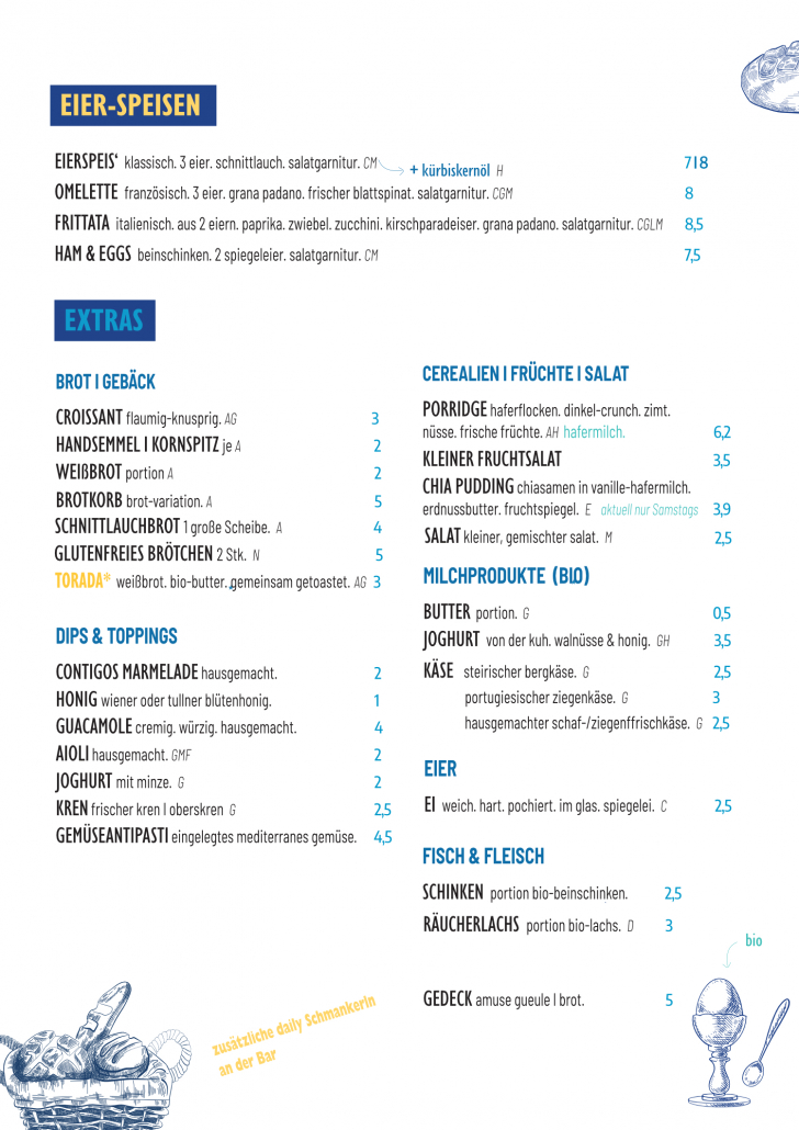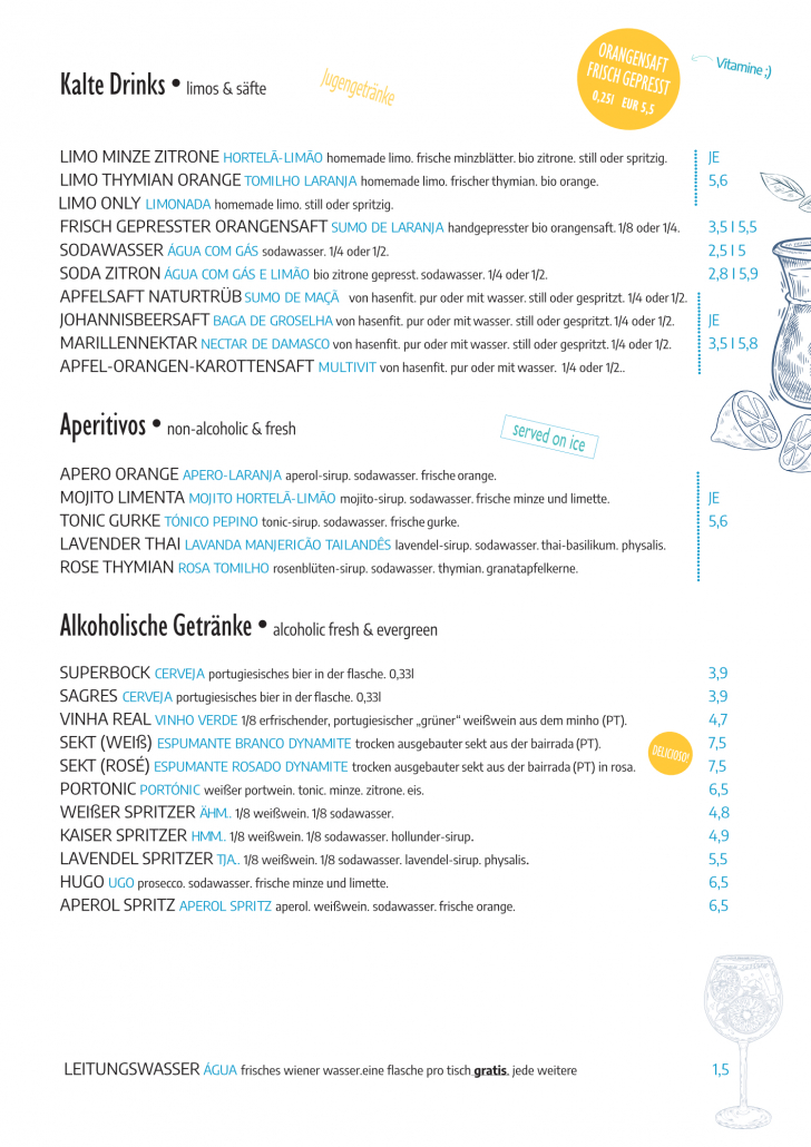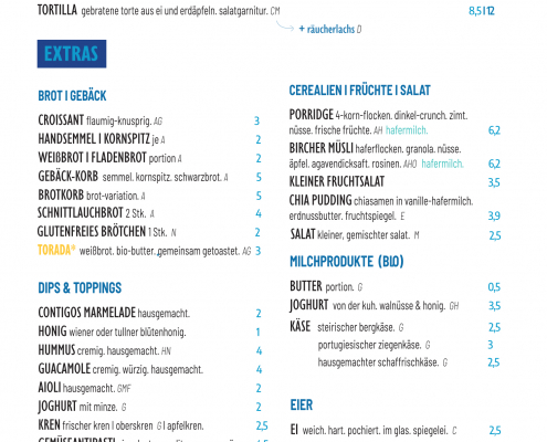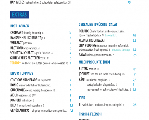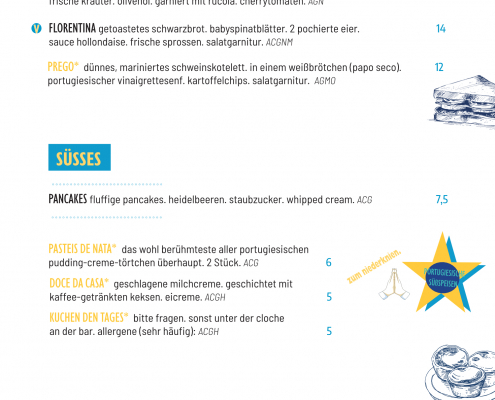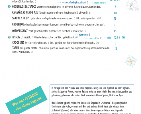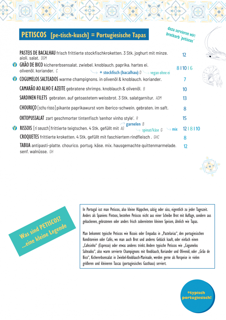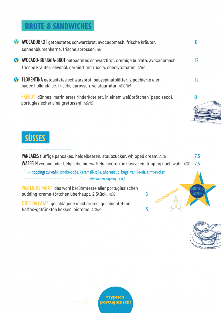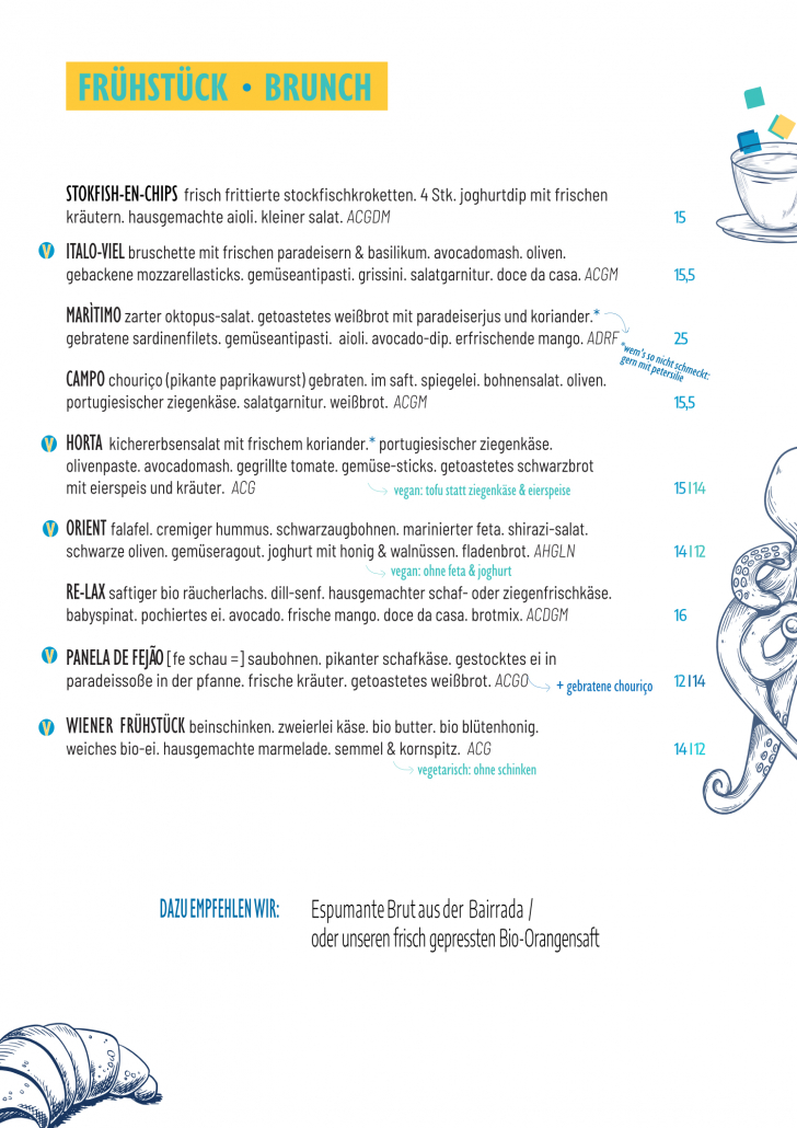 Frühstück • Brunch • Mittagsmenü • Petiscos/Tapas