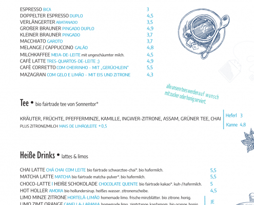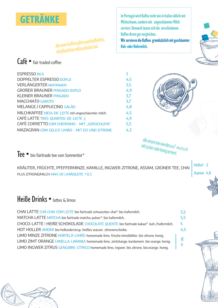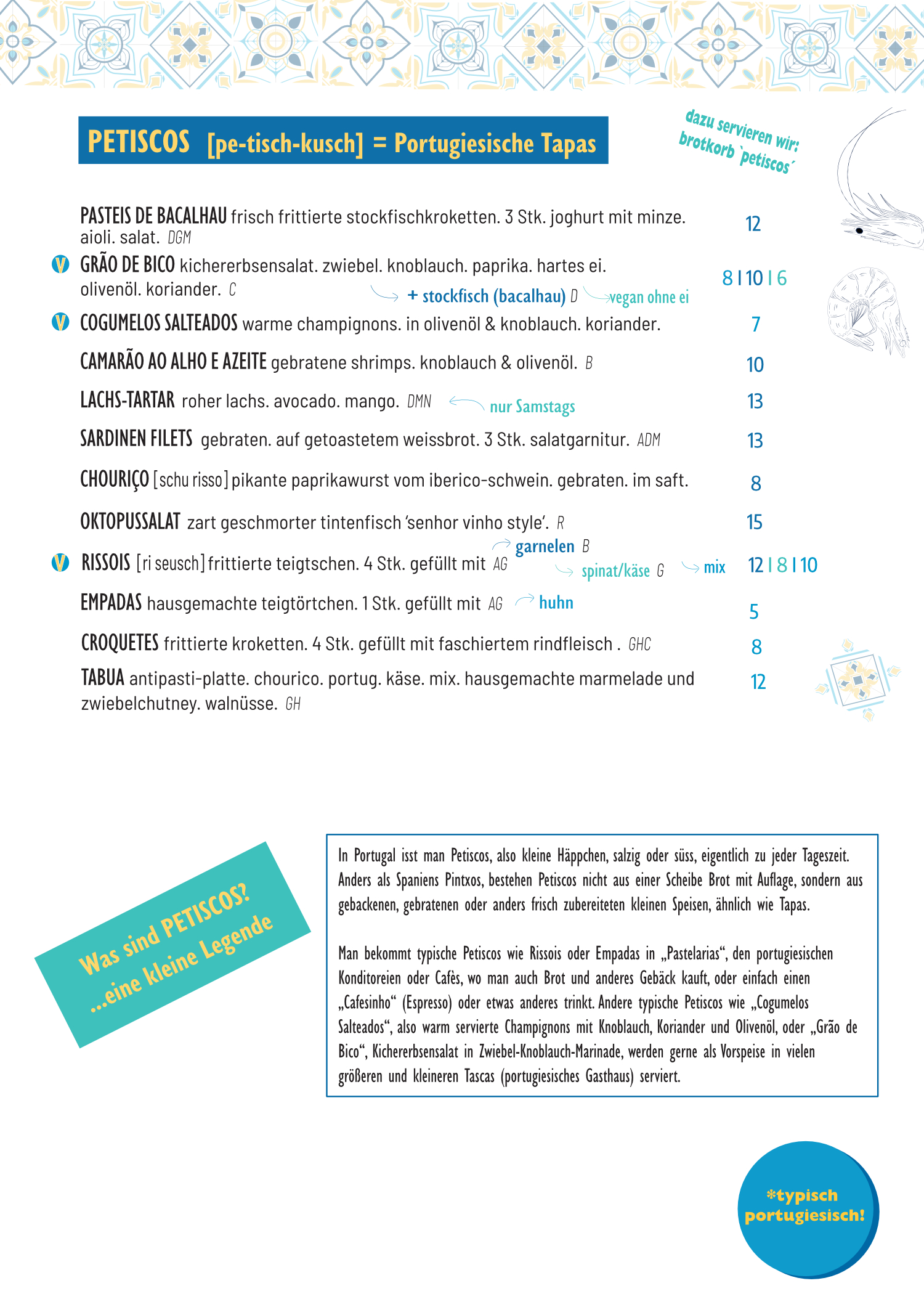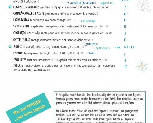 Petiscos / Tapas:    Di-Sa 8.30-15 Uhr